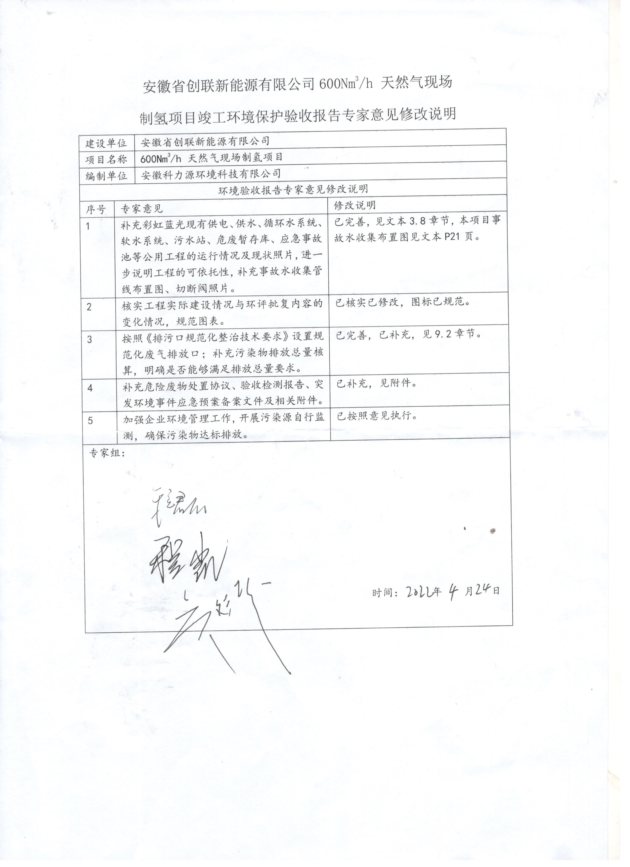 安徽省創聯新能源有限公司600Nm3/h 天然氣現場制氫項目驗收組嚴格依照國家有關法律法規、建設項目竣工環境保護驗收技術規范、本項目環評報告書和審批部門審批決定等要求對本項目進行驗收。驗收組認為本項目實施工程按照環評及其批復的要求,落實了相關環保設施,建立了相應環保管理制度,符合環保驗收條件,可通過環保驗收。根據《國務院關于修改<建設項目環境保護管理條例>的決定》(國務院令第682號),以及環境保護部《關于發布<建設項目竣工環境保護驗收暫行辦法>的公告(國環規環評[2017]4號),現安徽省創聯新能源有限公司600Nm3/h 天然氣現場制氫項目竣工環境保護驗收報告公示如下: