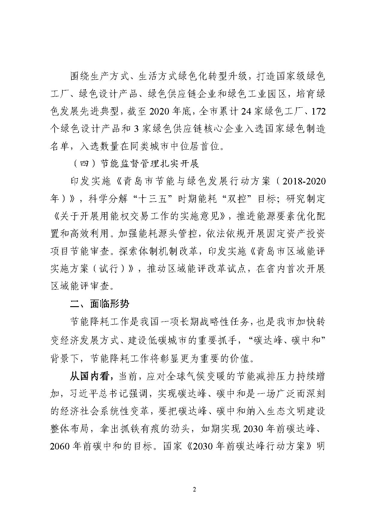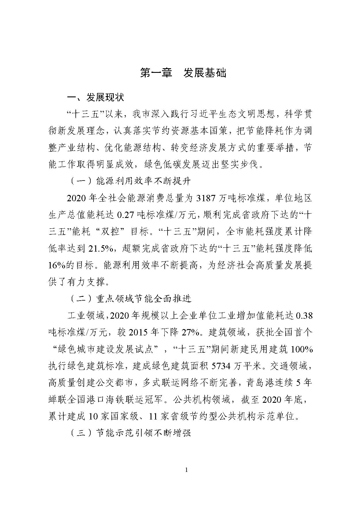 近日,青島市發展和改革委員會就《青島市“十四五”節約能源規劃(征求意見稿)》公開征求意見,該意見稿指出: